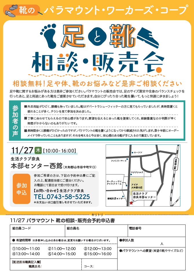 パラマウントワーカーズコープ「靴の相談販売会」を開催いたします。